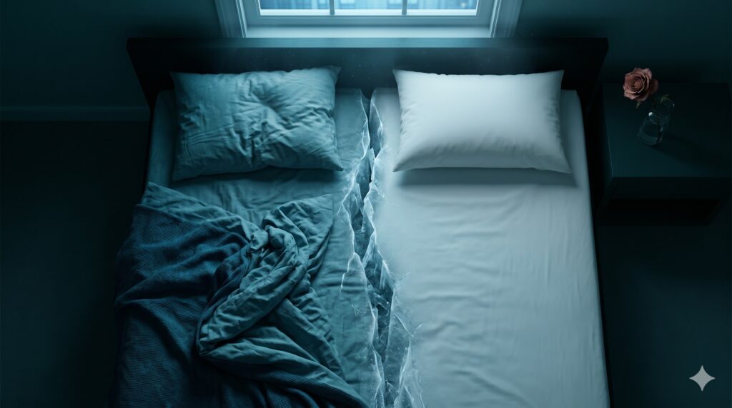 O narcisista lê qualquer tentativa de limite ou autonomia do parceiro como ofensa pessoal. Quando você pede respeito, quando discorda, quando coloca uma fronteira, o castigo raramente vem em palavras — vem pela ausência. O silêncio sexual é a forma mais sofisticada do abuso emocional, porque é invisível: não deixa marca, não há grito, não há cena. Só há o corpo dele virado para o outro lado da cama, noite após noite.